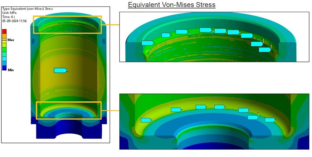 L’analisi FEM garantisce che i componenti possano sostenere queste pressioni senza il rischio di deformazioni o rotture, migliorando l’affidabilità del sistema di filtrazione.